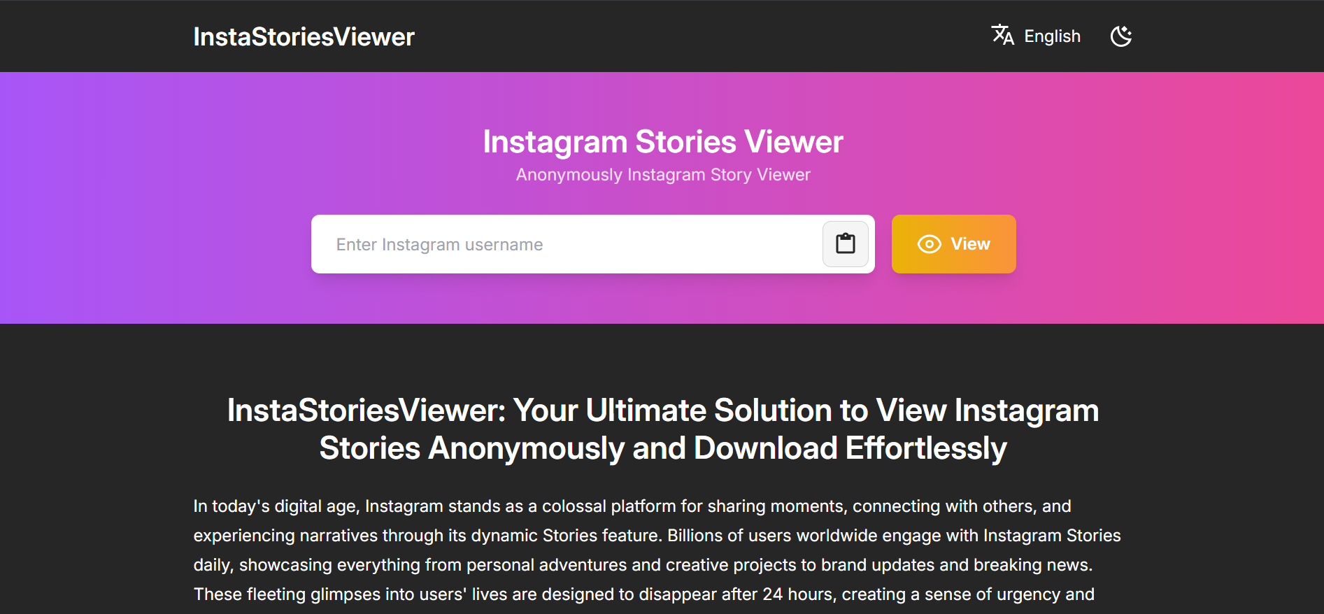 Insta Story Viewer adalah layanan berbasis web yang memungkinkan pengguna melihat Instagram Story secara anonim. Hanya dengan mengetikkan username target di kolom pencarian, kamu bisa langsung melihat story atau konten publik dari akun tersebut.